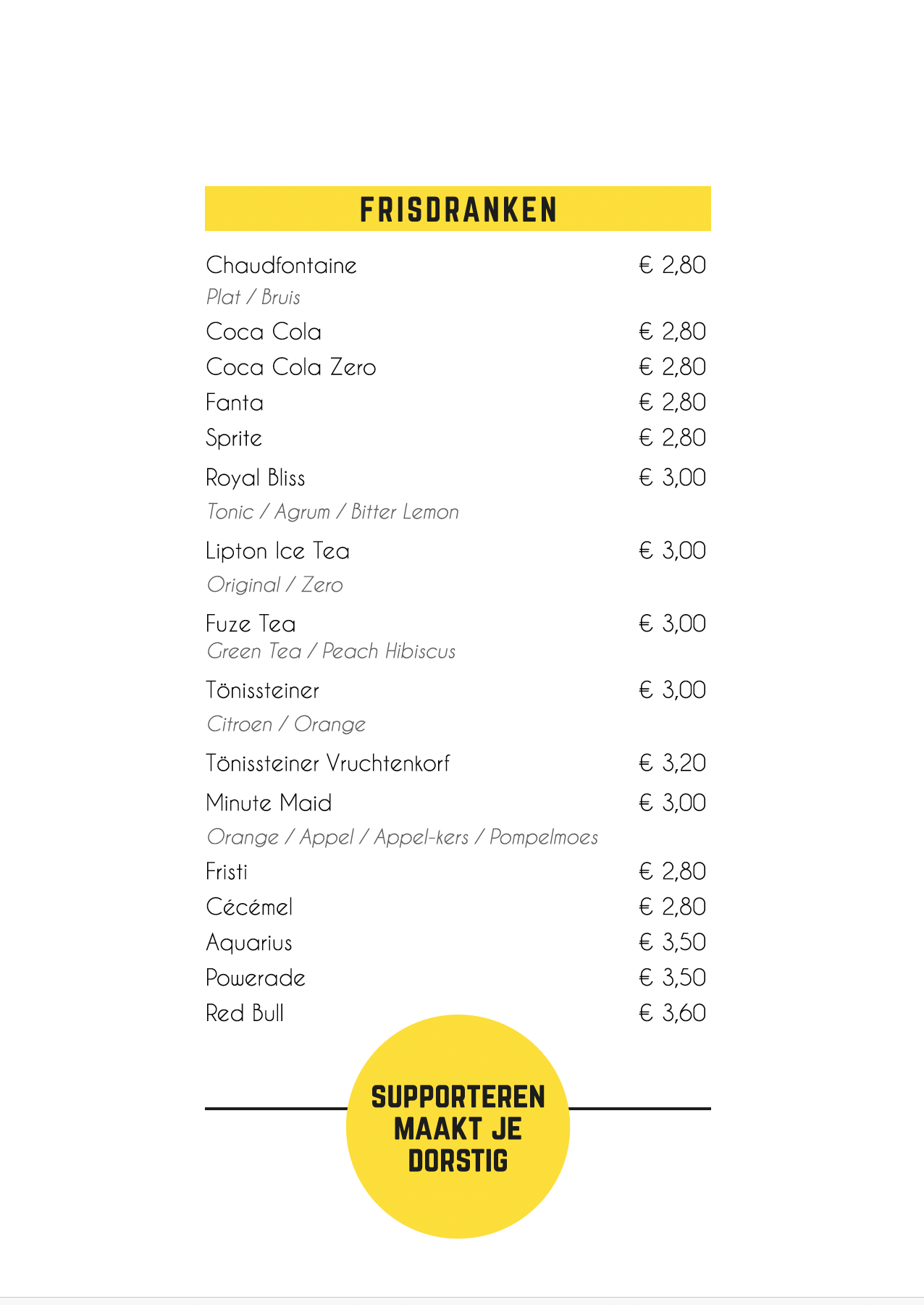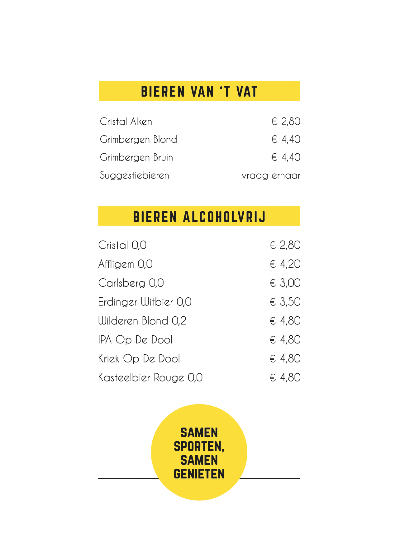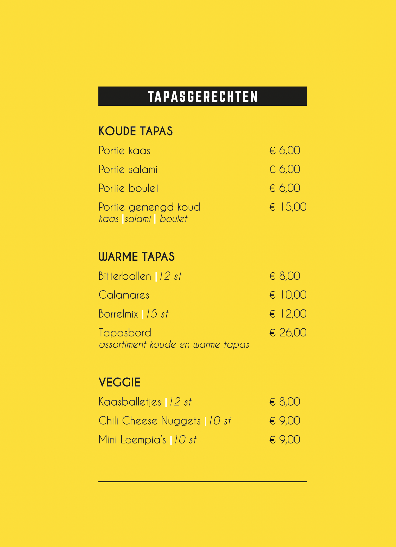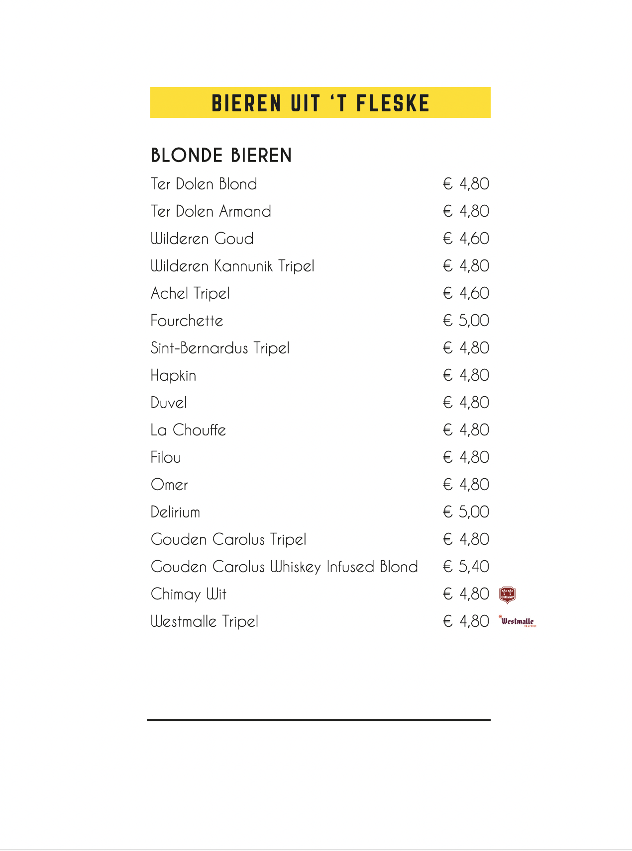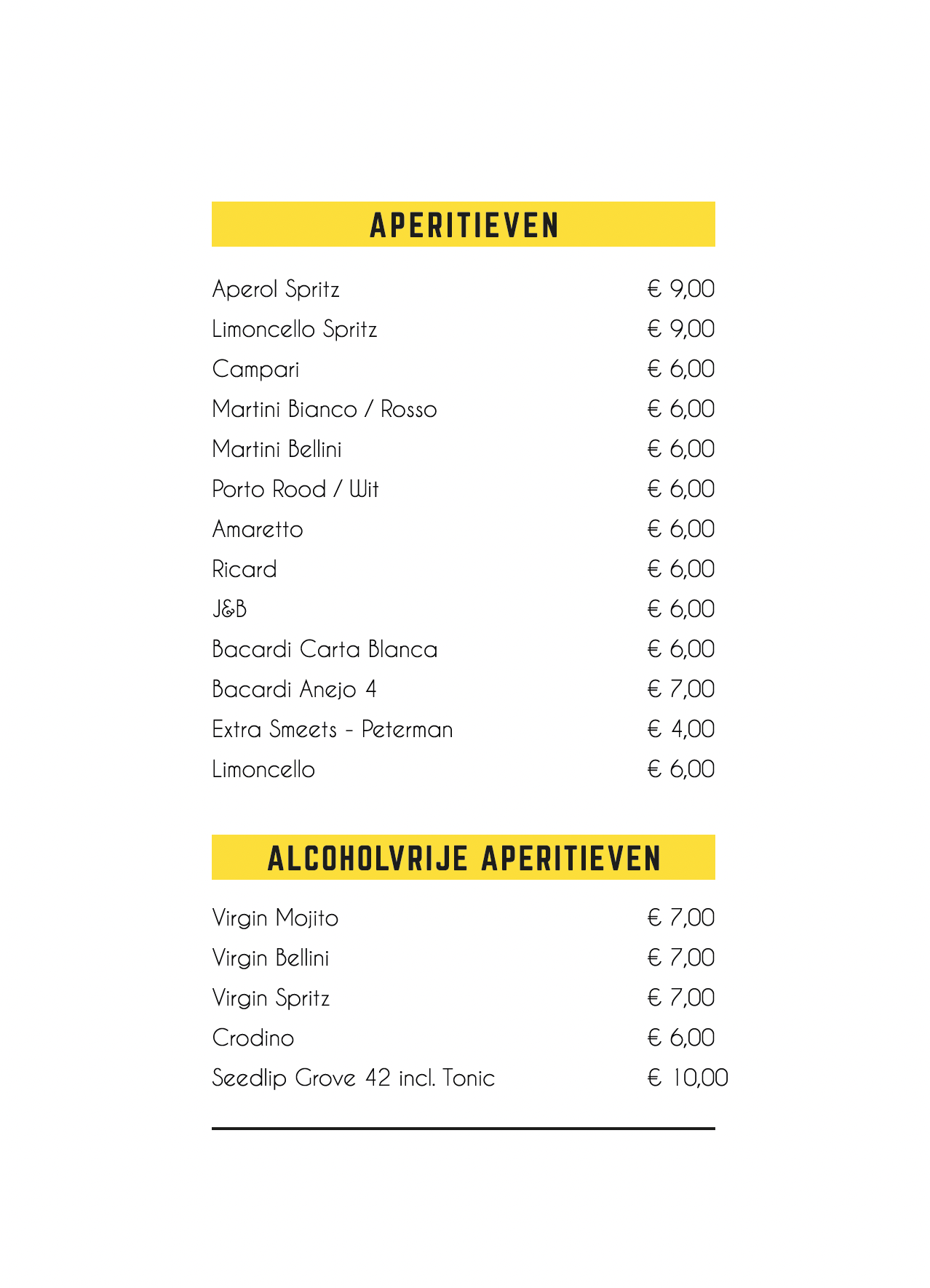 De WEYER Menukaart